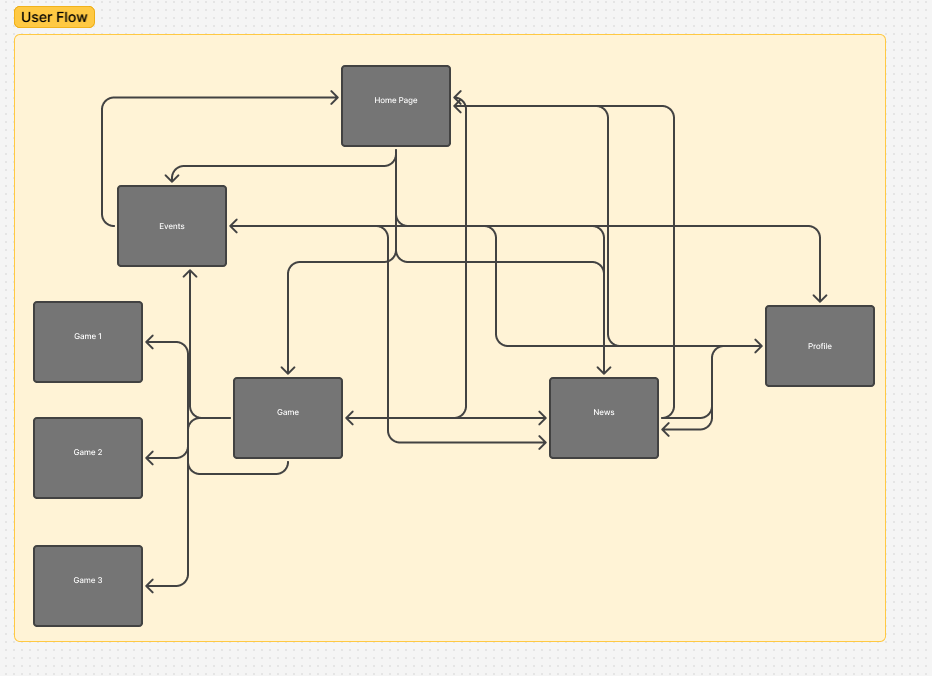 I was unable to create a proper representation that’s why this might look bit complicated but all that’s happening is from home page you can access all the pages and vice verse for all the other pages too. But, in game page you can access the other pages like collection, friends for each game. This is main as it felt simple to me and the user flow again inspired by the EA fc 25.