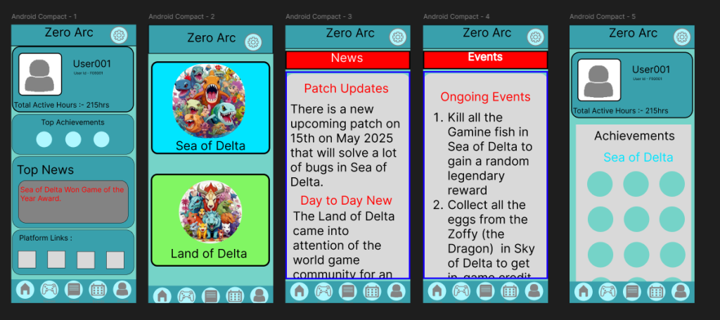 So for the Wire frame I was inspired by two companion apps one was EA Fc25 and other one being Destiny. So from EA fc25 I borrowed the layout of the home page as it was look quite simple to understand what was going on with it and then from destiny it’s features like news and achievements.